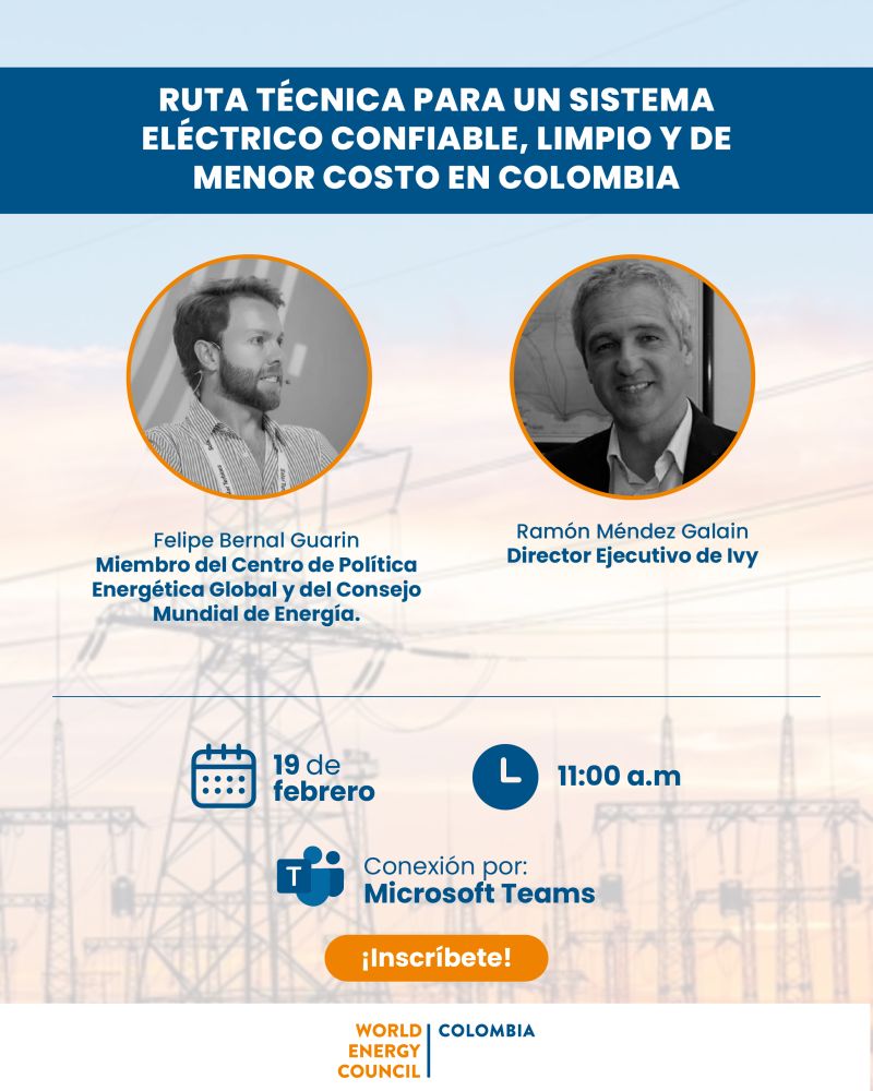 World Energy Council Colombia invites you to a conversation where we will talk, clearly and closely, about how to move towards a more reliable, cleaner electricity system at a lower cost for the country.