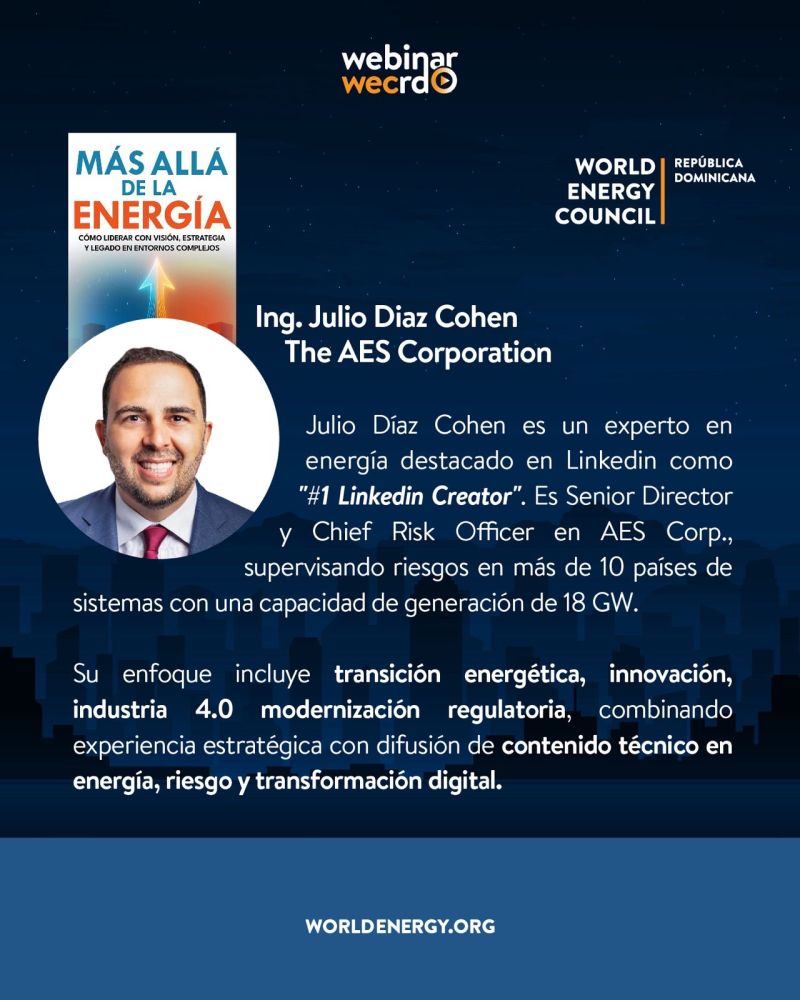 Julio Díaz Cohen is a leading energy expert, highlighted on LinkedIn as a “#1 LinkedIn Creator.” He is Senior Director and Chief Risk Officer at AES Corp., overseeing risks across operations in more than 10 countries, with a total generation capacity of 18 GW.