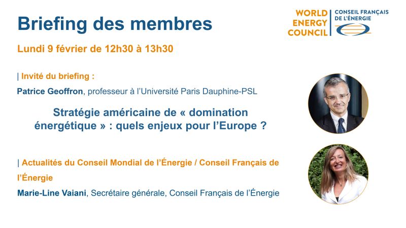 The French Energy Council invites you to its next Members' Briefing via videoconference on Monday, February 9, 2026, from 12:30 PM to 1:30 PM with: