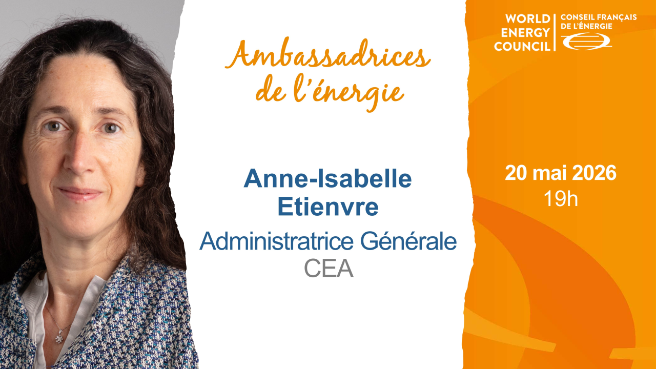 Anne-Isabelle Etienvre will talk about her career (*), her interest in the energy sector, and her vision for energy transition and how to accelerate it in a balanced approach in line with the World Energy Council's Energy Trilemma (energy security, energy equity, environmental sustainability).