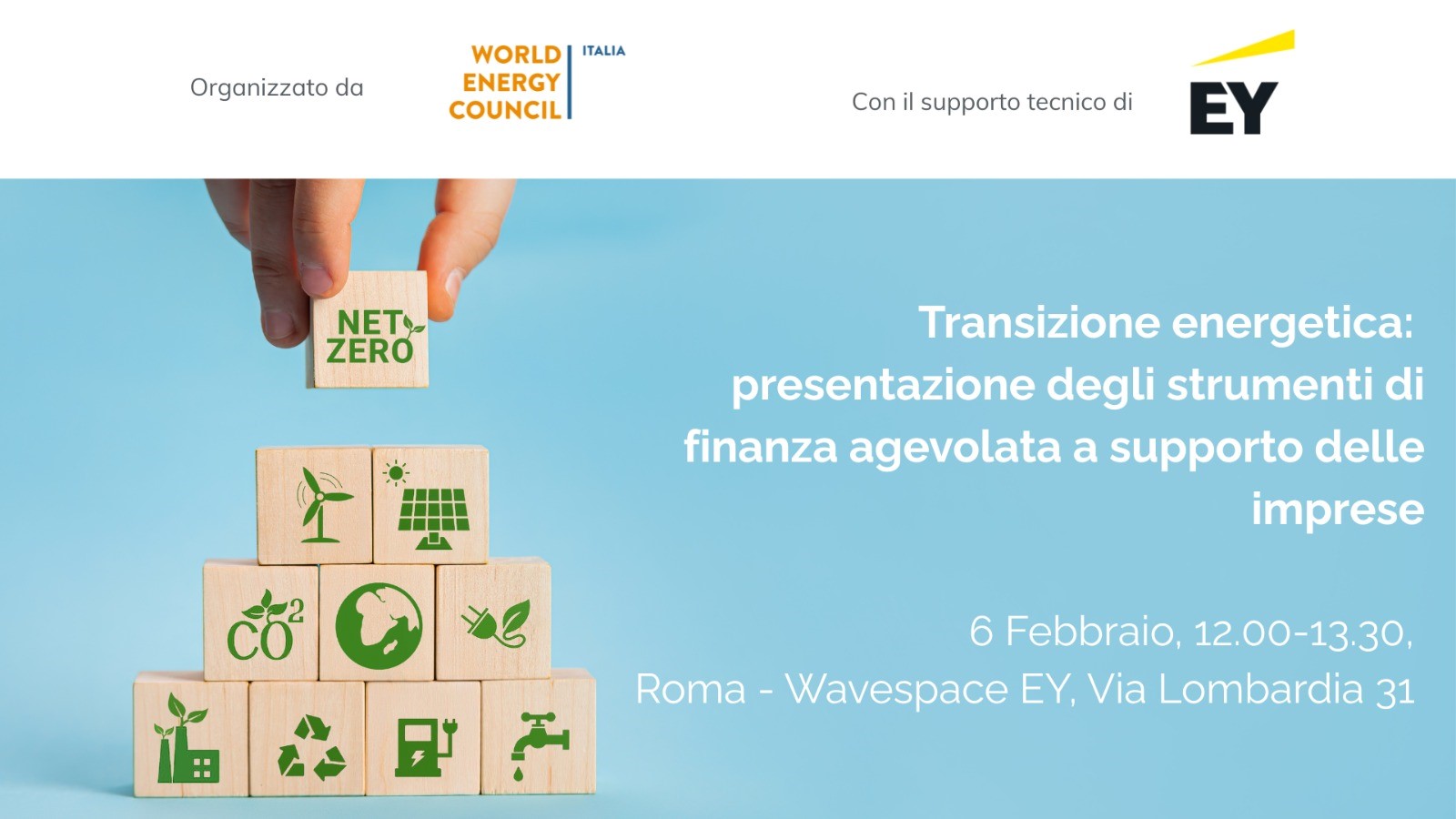 World Energy Council Italy is hosting an invitation-only meeting, "Energy transition: presentation of subsidised finance instruments to support businesses", with the technical support of EY.