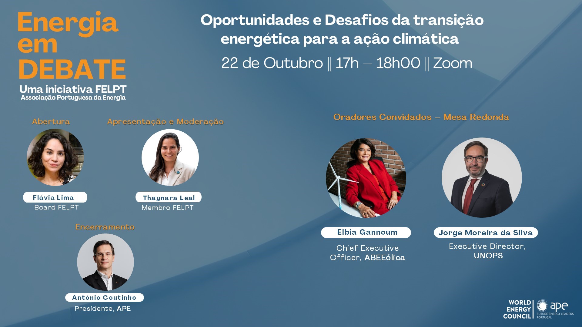 The Future Energy Leaders Portugal of the Portuguese Energy Association will host another session of the "Energy in Debate" series, this time dedicated to the theme "Opportunities and Challenges of the energy transition for climate action"