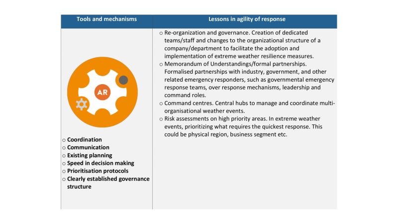 A diverse group of experiences from around the world (10 in total) identify the system failures triggered by the extreme weather events, the impacts of these failures, and lessons learnt from mitigation and recovery. The learning reviews demonstrate how the Council’s Dynamic Resilience Framework can be used in event response analysis. Applying the Framework criteria helps companies identify potential gaps and strengths in resilience.