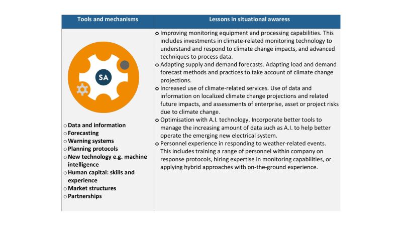 2. Key barriers to dynamic resilience of whole energy systems in transition include lack of coordination, cumbersome contingency plans, underutilised communication, and the rising costs of failure. Improving climate change scenarios modelling and weather forecasting in informing long term adaptation needs are key enablers of dynamic resilience.