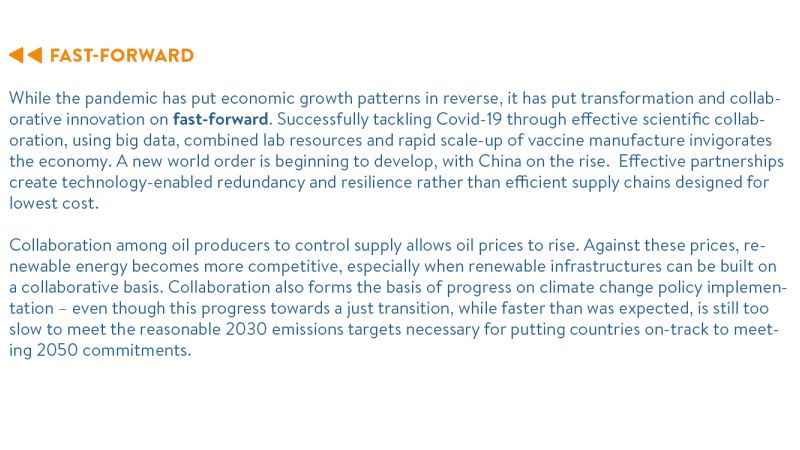 The “unknowns” of the COVID-19 crisis cover every aspect of global response and recovery. How pernicious is the pandemic? Will it be solved with primarily a technology fix or require sustained behavioural change? Will recovery happen in a way that builds trust between countries, through wider collaboration, or will governments emphasise more self-reliance? Once the pandemic is under control, will countries return to a pre-pandemic agenda or will they engage with a more ambitious transformational agenda?
