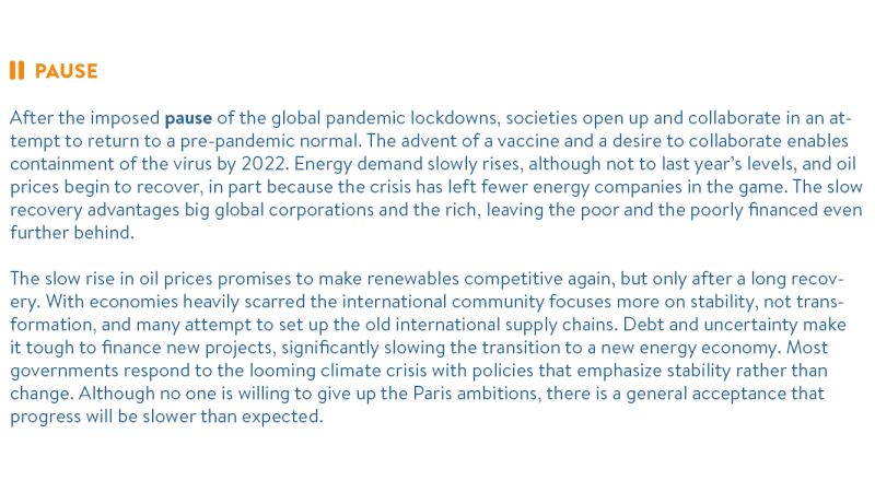 While it is impossible to predict future of energy, we can prepare for and shape what comes after crisis. The Council promotes and uses plausibility-based scenarios to prompt leadership conversation on reallocation of investments, exit strategies and a possible new integrated policy paths to enable orderly global energy transition as the world emerges from crisis.